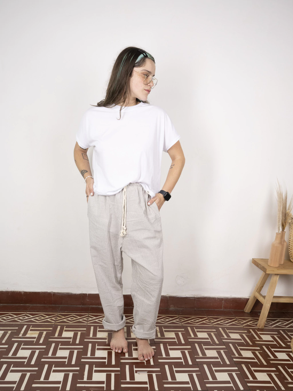 Descubre el Pantalón Funky Niza confeccionado en rustico de algodón premium. Este modelo, pensado para brindarte comodidad y estilo, cuenta con tira de ajustar de hilo de algodón que se adapta a tu figura.