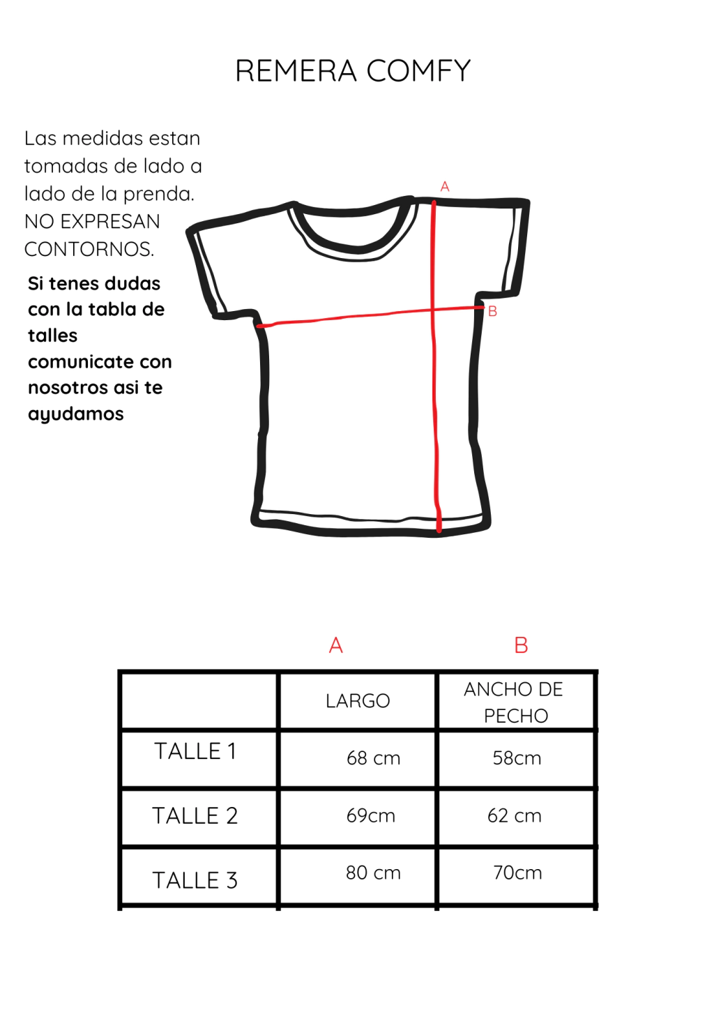 Nota: Tené en cuenta que al ser prendas confeccionadas artesanalmente puede haber una diferencia de 1 a 2 cm con la prenda final.