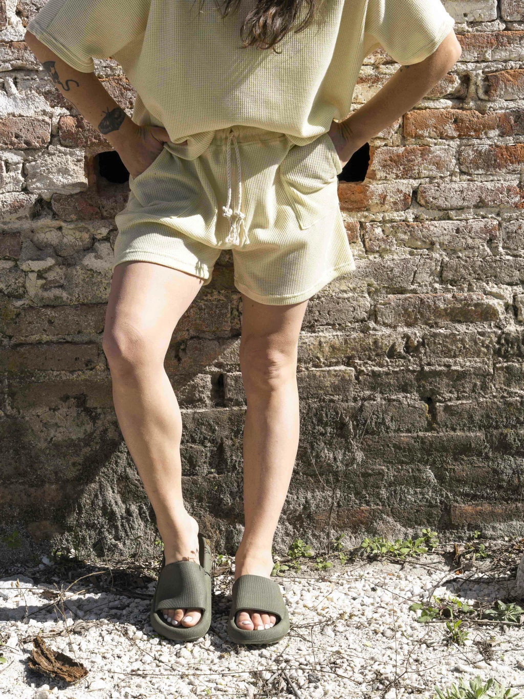 Descubrí la comodidad y frescura del Short Niza Crudo, confeccionado en tejido waffle, ideal para acompañarte en cada momento del día. Su diseño cuenta con un elástico ancho en la cintura y un práctico cordón de ajuste que asegura un calce cómodo y personalizado.