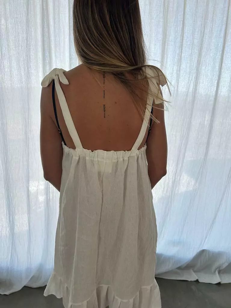 Descubrí la frescura y elegancia del Vestido Amalfi Blanco, confeccionado en lino de algodón rayado que brinda una textura suave y transpirable para acompañarte durante todo el día. Su diseño presenta una espalda descubierta que aporta un toque de sensualidad sutil, mientras que las delicadas tiras para atar permiten un ajuste personalizado y cómodo.
