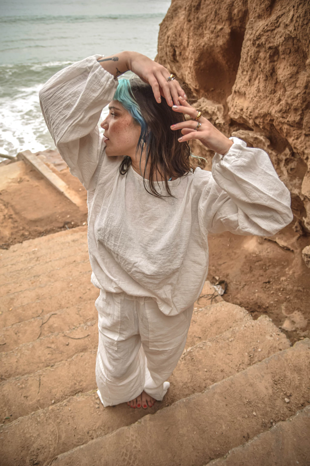 Descubre la Blusa Peace ML Cruda, una prenda ideal para cualquier ocasión. Confeccionada en gasa y 100% algodón, esta blusa de mangas largas te ofrece una sensación de frescura y ligereza, perfecta para los días más cálidos.