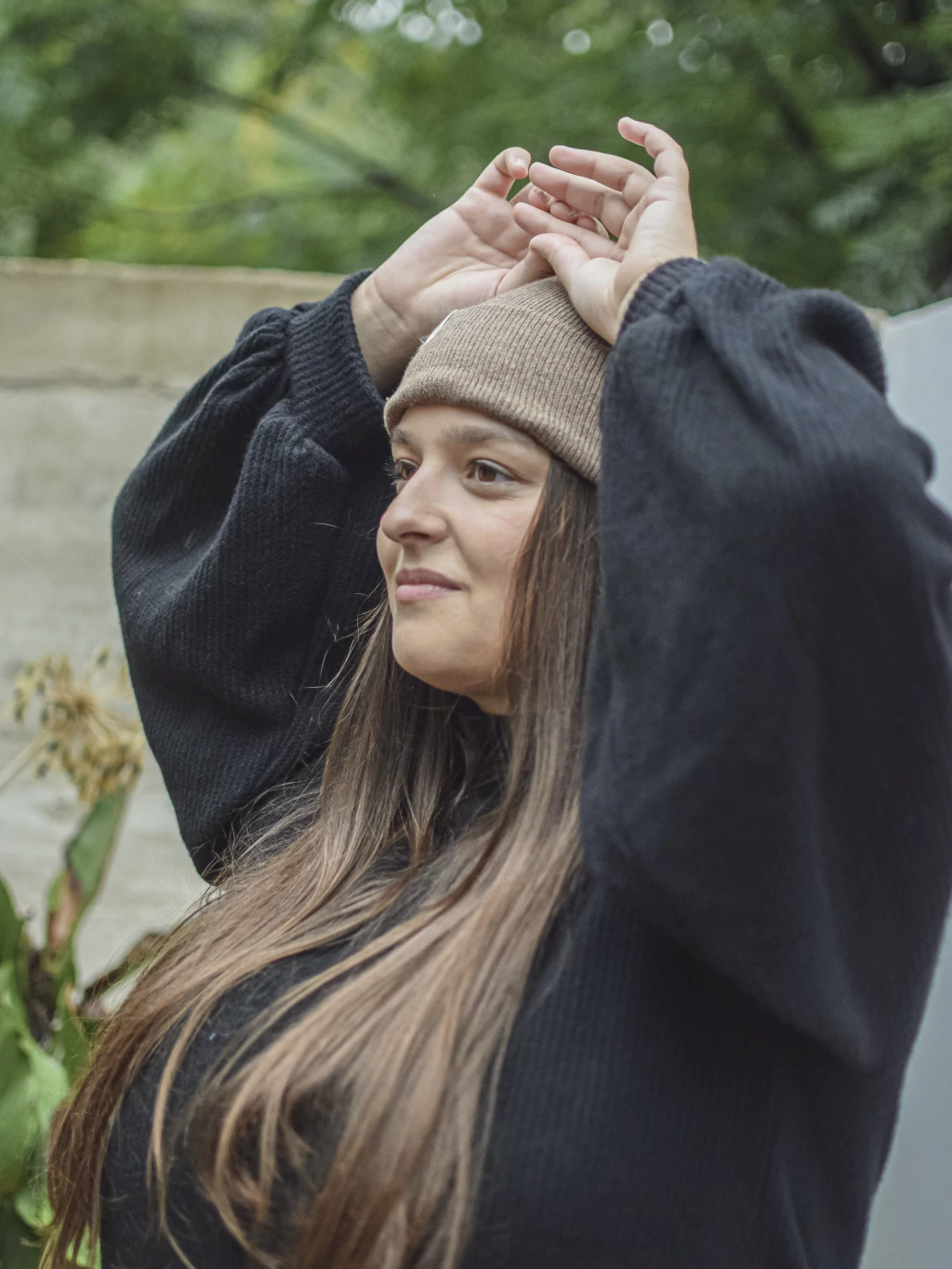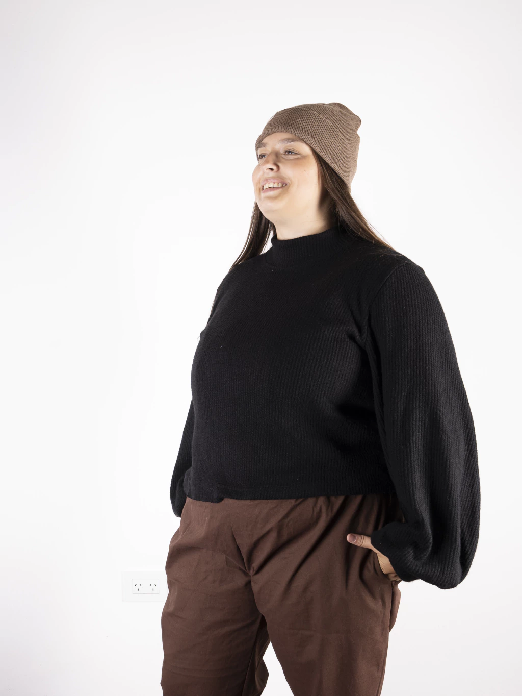 Descubre el Buzo con mangas globo, confeccionado en lanilla de punto de alta calidad. Su textura única y suave lo convierte en una prenda ideal para abrigarte durante esos días frescos, sin sacrificar tu estilo.