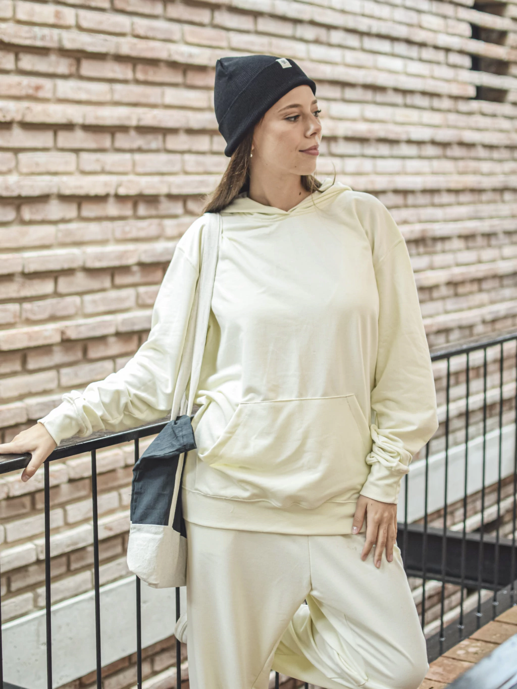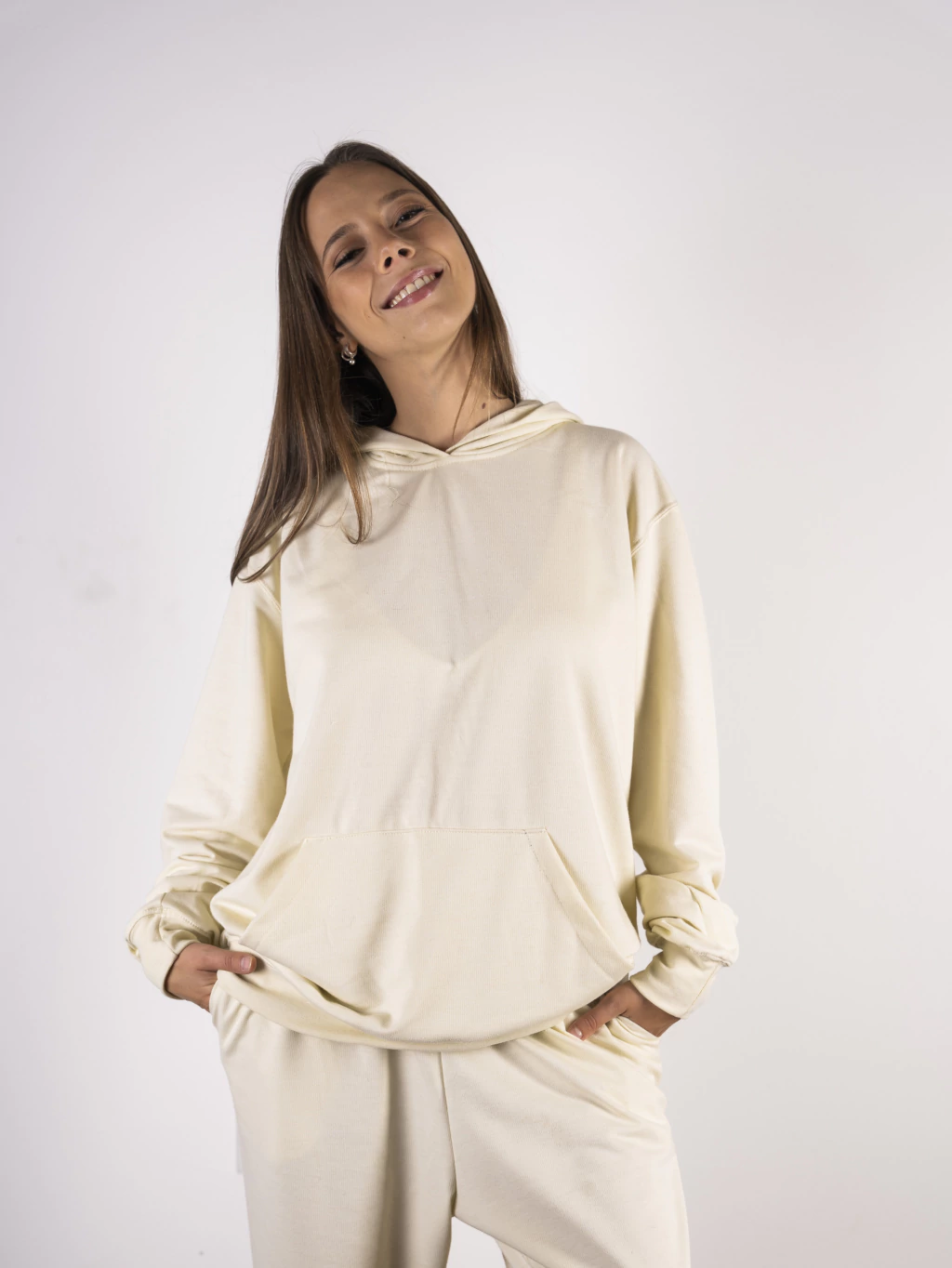 Hoodie confeccionado en rústico de algodón, suave y cómodo para acompañarte en tus días más frescos. Cuenta con un amplio bolsillo canguro al frente, ideal para mantener tus manos calientes o guardar tus objetos personales con facilidad.