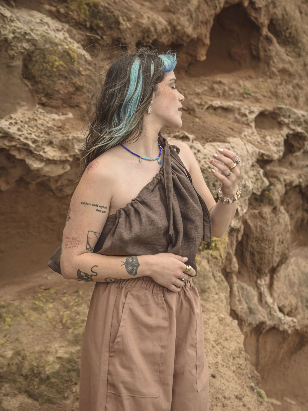 La Musculosa Cartagena Chocolate está diseñada para acompañarte en tus días con la máxima comodidad y frescura. Confeccionada en lino air flow, ofrece una sensación ligera y transpirable, ideal para el clima de Argentina.
