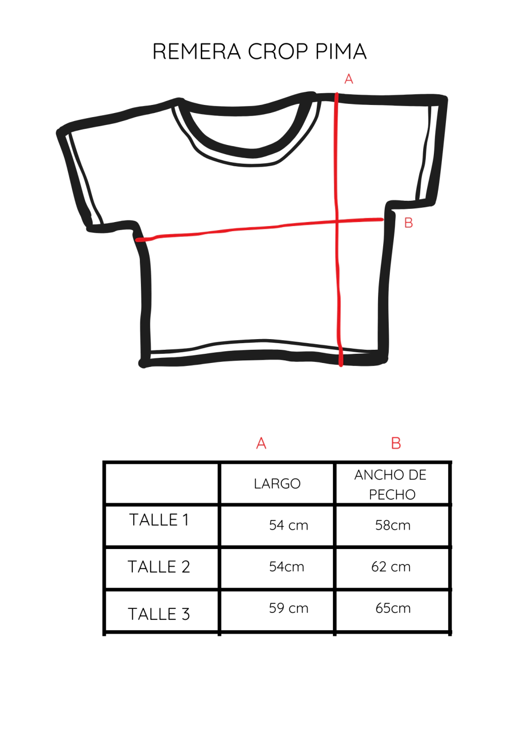 Medidas tomadas de frente de lado a lado de la prenda. (Tener en cuenta que al ser prendas confeccionadas artesanalmente, puede haber una diferencia de 1 a 2 cm con la prenda final.)
