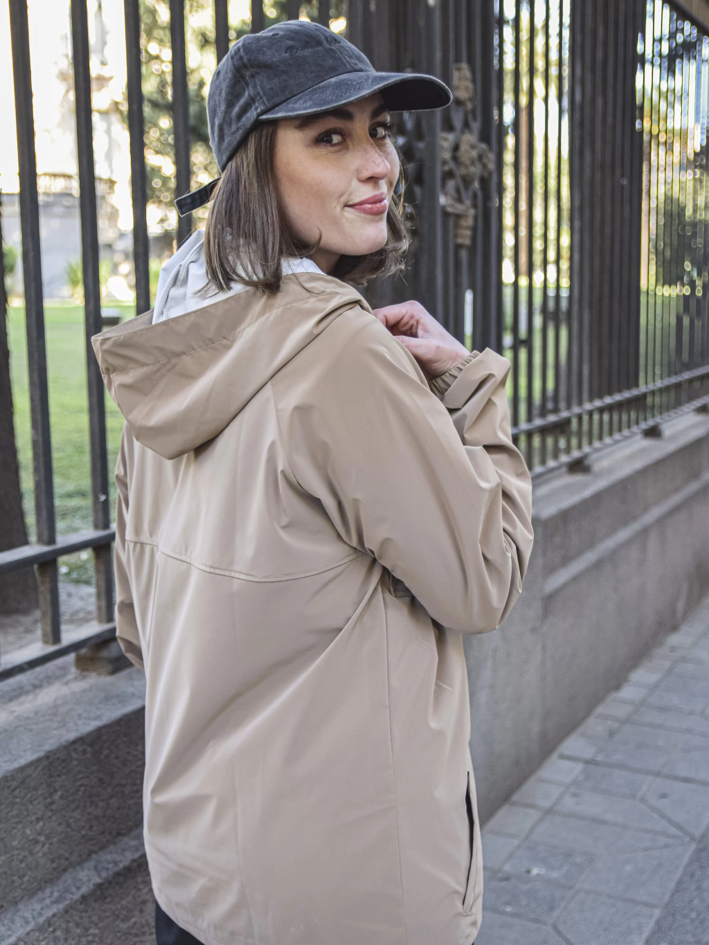 Rompeviento confeccionado en tela soft trench gamuzada, suave y que te protege del viento y no pasa el agua